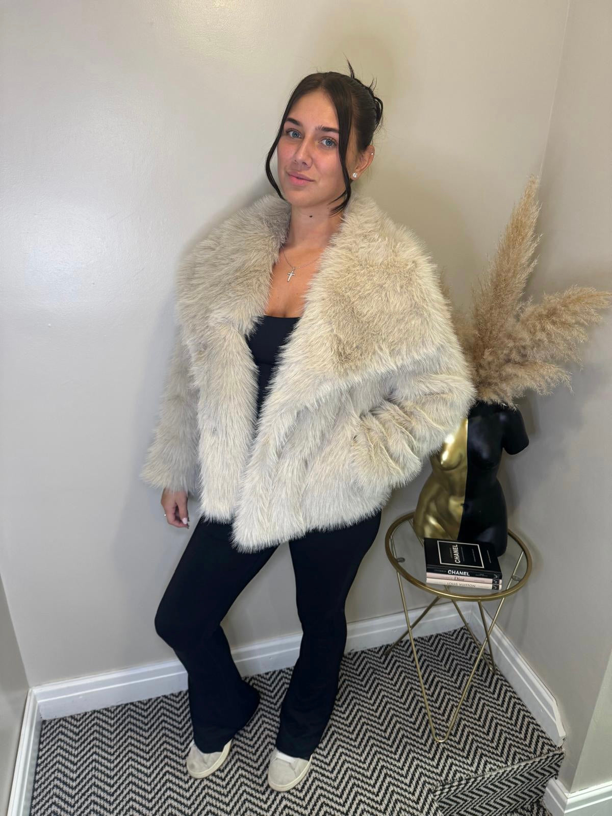 Fur coat in beige